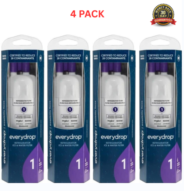 The Whirlpool EDR1RXD1 4‑Pack delivers up to 24 months of superior water filtration performance. Reduces chlorine, odor, heavy metals, cysts, VOCs, pesticides, and more for great‑tasting water and clearer ice.
