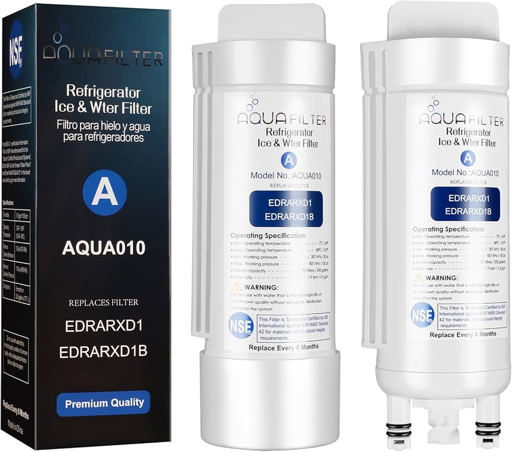 The Whirlpool EDRARXD1 Refrigerator Water Filter 2-pack provides a convenient solution for maintaining clean drinking water and ice in your refrigerator. Each filter uses advanced filtration technology to reduce chlorine taste, odors, lead, and other contaminants. With an easy twist-in installation design, replacing the filter is quick and hassle-free. This pack provides up to 12 months of reliable water filtration for your home.